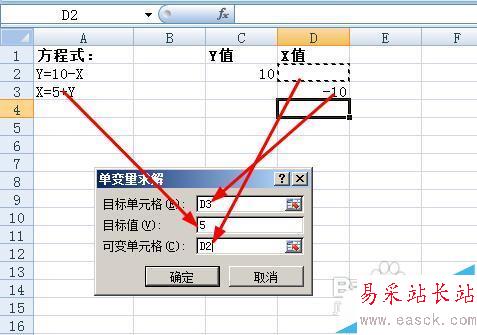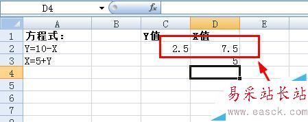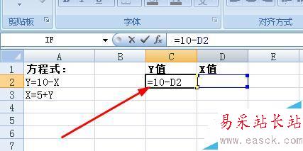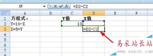 3、利用第一個公式Y=10-x,建立C2單元格的公式:=10-D2