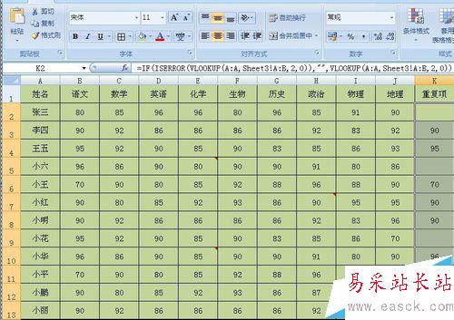 6、那么我們?nèi)绾涡薷倪@個(gè)公式呢,那就是將原有的公式修改成這樣:IF(ISERROR (原公式)),"",原公式)))。我們之前的公式是這樣的:=VLOOKUP(A:A,Sheet3!A:B,2,0),修改后就是這樣了:=IF(ISERROR(VLOOKUP(A:A,Sheet3!A:B,2,0)),"",VLOOKUP(A:A,Sheet3!A:B,2,0))。