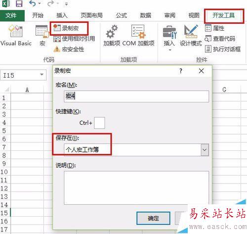 如圖點“開發工具”(沒有的話,可以在自定義功能區里面找),點擊“錄制宏”,彈出“錄制宏對話框”在“保存在"下拉菜單選擇"個人宏工作簿",點擊”確定",然后點擊“停止錄制”。第一個宏和個人宏工作簿就完成了。