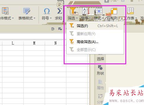 2、首先是需要對相同的物料進行一個歸類,這里主要操作步驟為“選擇數據-篩選-篩選”如下圖的操作。這里需要選擇相應的數據,要不然,就是整個數據的選擇。
