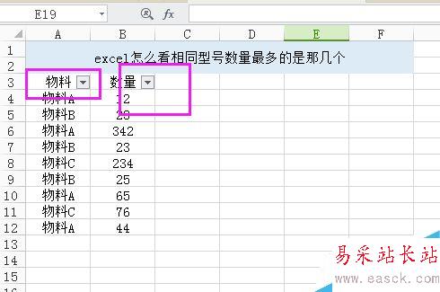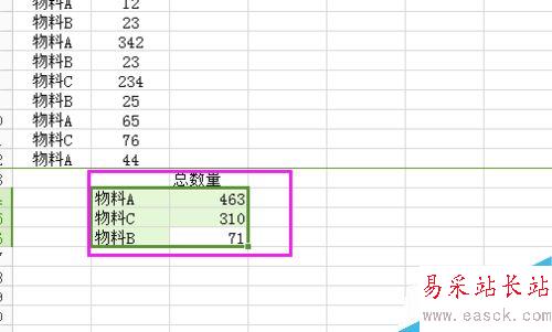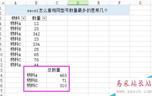 8、數據較少的時候,可以很明顯的看出來數據最多的物料是“物料A”如下圖顯示。