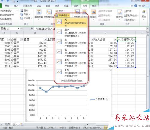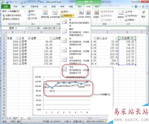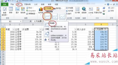 “帶數據標記的折線圖”操作步驟并不難,我們以此為例,要求:在"收入"工作表中,根據篩選的"公司甲"人均消費數據,生成一張"帶數據標記的折線圖"。