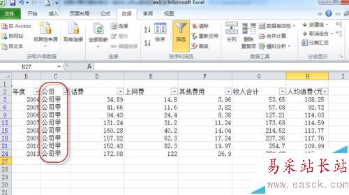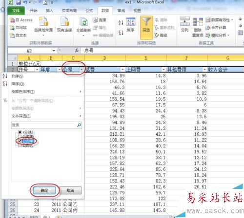 3、點“公司”單元格右邊的向下小箭頭,按要求選定“公司甲”;例,如圖