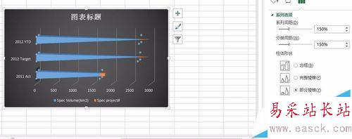 6、此時只需要變換柱體形狀前的選擇即可,因為是單項選擇,也就是只能選擇一種形狀,初始缺省為方框,小編改為圓柱圖,形狀如下圖所示: