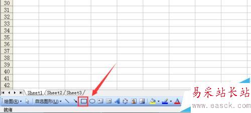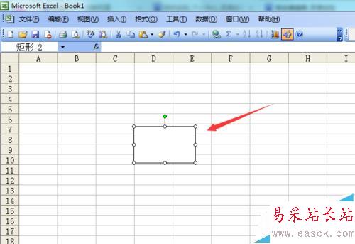 3、點擊矩形選項,用鼠標左鍵在編輯區里繪制一個矩形,如圖所示: