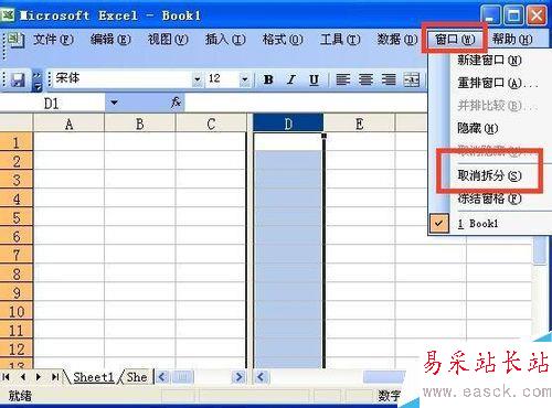 5、如果要取消拆開只需要點擊窗口,然后點擊下拉菜單上面的取消拆開即可