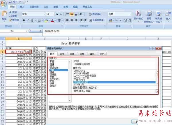 6、設置單元格時間格式: