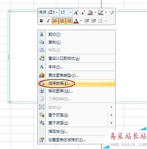 3、首先要選擇圖表的數據,鼠標在圖表區內右擊,在彈出的快捷菜單中選擇“選擇數據”。