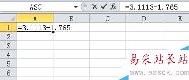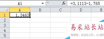 那么"A1"單元格中就顯示了" 3.1113-1.765"的差值。