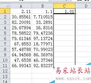 3、選中"C1"單元格,將鼠標移到"C1"單元格的右下角,會出現一個黑色的小十字。