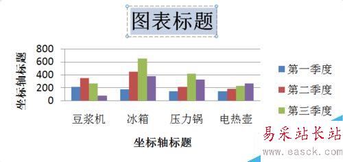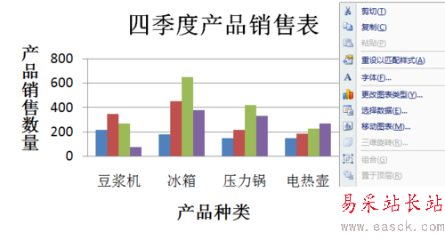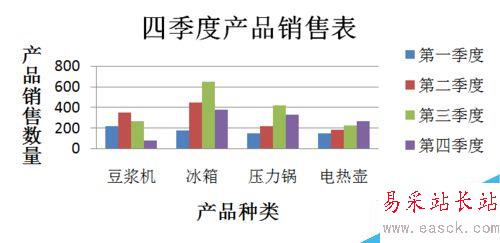 3、這時可以看到一個基于產品銷售數據的excel圖表便已經制作好了,接下來還要對它進一步完善。
