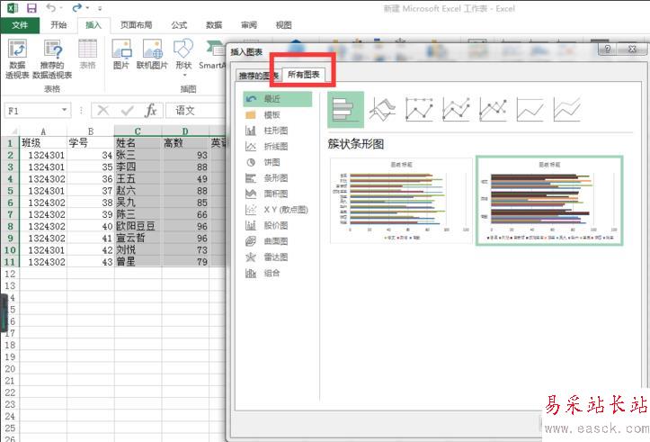 4、在彈出的窗口中選擇“所有圖表”,如圖所示。