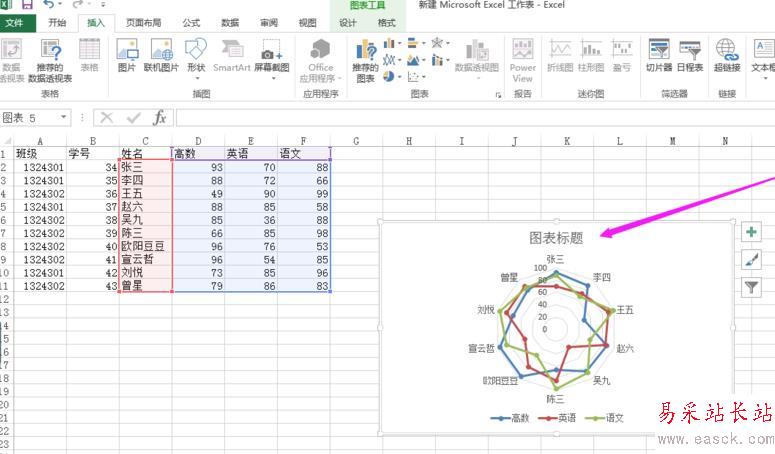 6、單擊圖表的標(biāo)題,就可以輸入你想輸入的標(biāo)題。如圖所示。