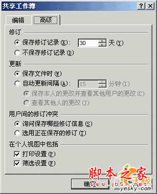 在共享工作簿對話框中將“允許多用戶同時編輯,同時允許工作簿合并”復選框選中。然后可以更據自己的需要進行高級設置。高級設置的界面如圖3所示。