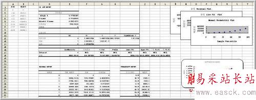 在線性擬合圖中可以看到,不但有根據要求生成的數據點,而且還有經過擬和處理的預測數據點,擬合直線的參數會在數據表格中詳細顯示。本實例旨在提供更多信息以起到拋磚引玉的作用,由于涉及到過多的專業術語,請各位讀者根據實際,在具體使用中另行參考各項參數,此不再對更多細節作進一步解釋。
