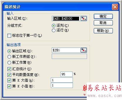 2. 選擇“工具”-“數據分析”-“描述統計”后,出現屬性設置框,依次選擇: