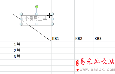 同樣的方法,把表頭中其它的內(nèi)容都輸入到文本框,最后一一拖拽過(guò)去,找個(gè)合適的地方放置好就可以啦!(這里小易以單斜線表頭為例,多斜線表頭只要多建幾個(gè)文本框即可)
