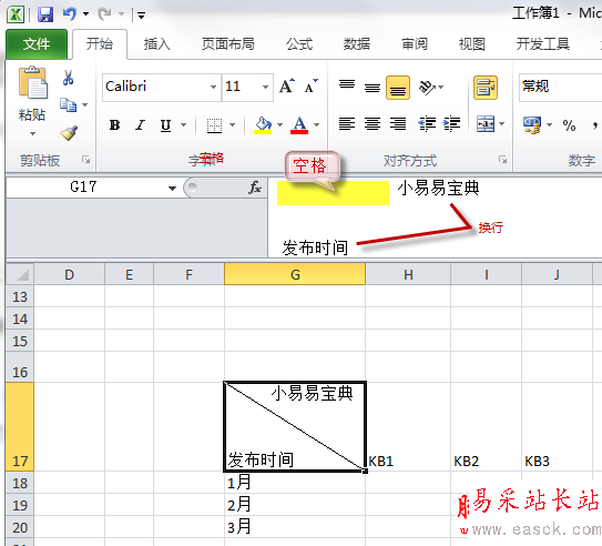 直接在單元格中輸入表頭內(nèi)容,按“Alt+Enter”鍵換行。然后通過(guò)換行和空格鍵來(lái)調(diào)整內(nèi)容的位置。