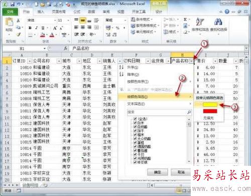 Excel2010中如何按照顏色篩選 三聯教程