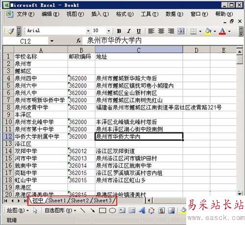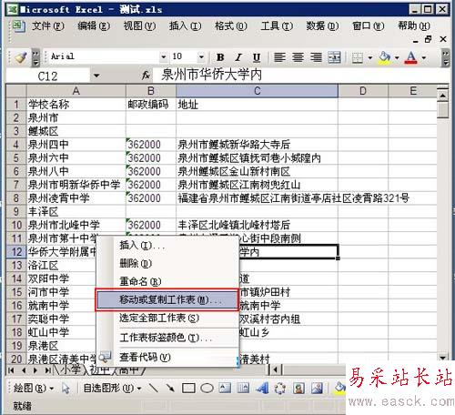 1、打開Excel表格在工作薄中選擇要轉(zhuǎn)移的頁面,如下圖中的“初中”。