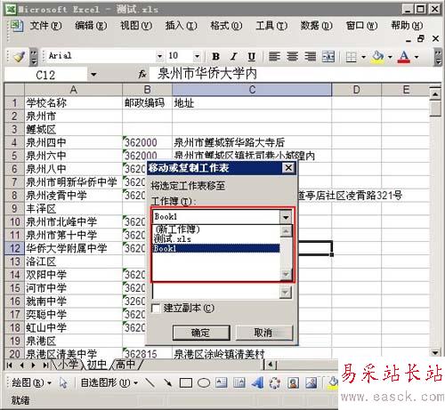 3、此時(shí)選擇你要轉(zhuǎn)移到的新工作表當(dāng)中,如下圖的“book1”。