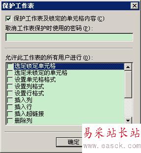 ⑥默認選中頭兩個“選定鎖定單元格”、“選定未鎖定單元格”,取消它們后,用戶將不能選中單元格。
