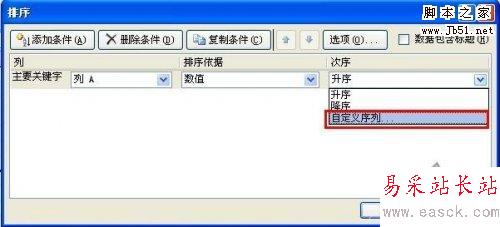 3、選擇“自定義序列”,這里面我們就可以選擇我們需要排序的類型了,然后確定即可。