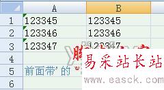 或者在數字前面添加一個半角的單引號“ ' ”。