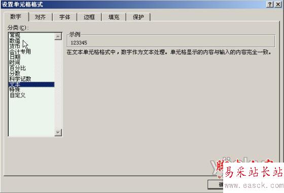 從彈出菜單中的“數字”選項卡中選擇“文本”即可。