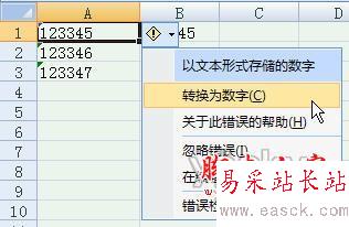 對于采用添加半角引號方法數值的數字文本,我們可以這樣操作: