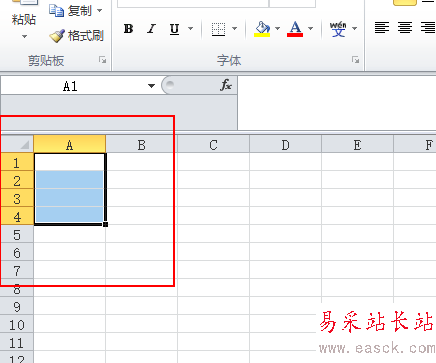 7、按回車鍵運行,然后再回到excle的表格中來,發現A1支A4的表格已經被選中了。