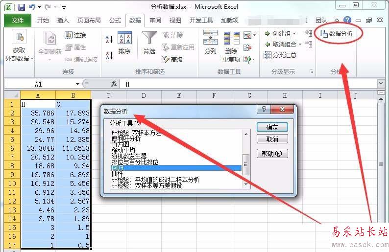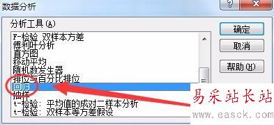 8、數(shù)據(jù)分析對話框中,選擇回歸選項。