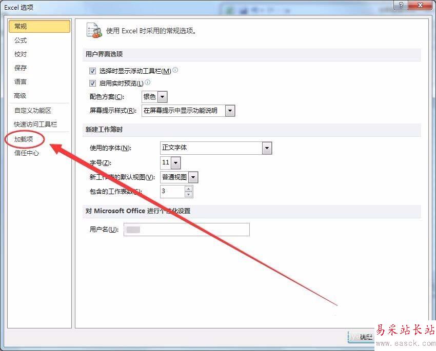5、Excel選項中,選擇加載項選項。