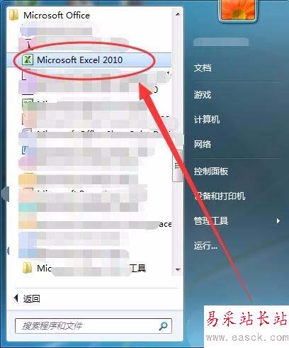 1、單擊開始---->所有程序---->Microsoft Office,選擇Microsoft Excel 2010選項。