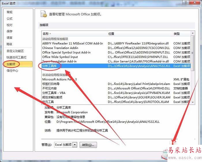 6、加載項中,選擇分析工具庫選項,單擊確定。