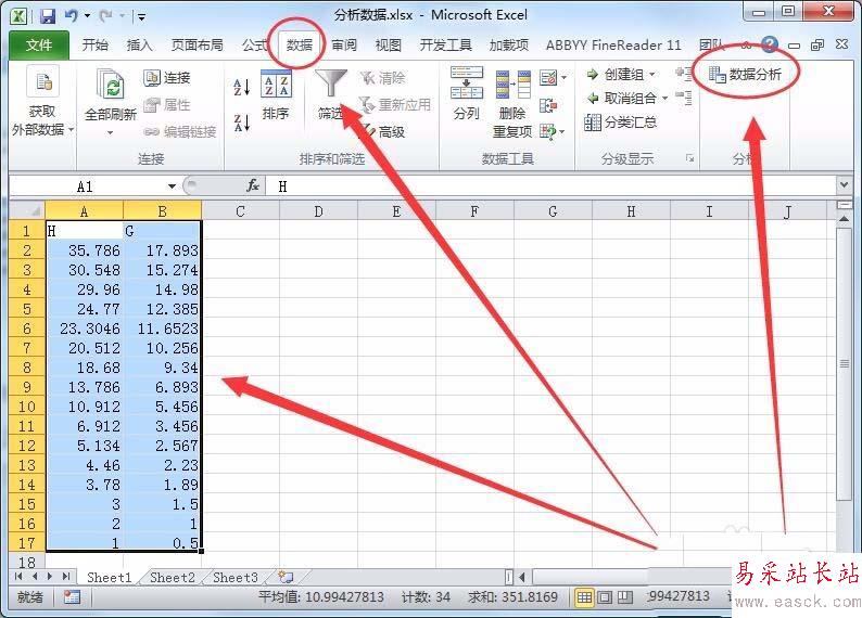 3、選中所有數(shù)據(jù),單擊數(shù)據(jù)菜單項中的,數(shù)據(jù)分析選項。