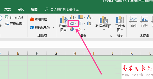 2、然后點擊Excel上方菜單插入工具,插入折線圖,如圖所示