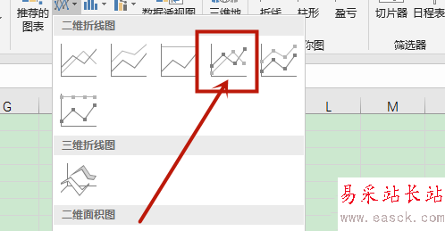 3、接著在選擇折線圖的樣式,如帶有標記點的,如圖所示