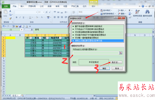 選取需要限制查看的表格區(qū)域(本例是工作表聯(lián)系人!C1:G8區(qū)域),依次點(diǎn)擊:開(kāi)始/條件格式/新建規(guī)則;