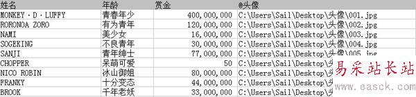 上面表格中頭像那一欄,注意的是要在標題那前面加個@,這是代表路徑的意思。下面內容分別是頭像對應的位置路徑。
