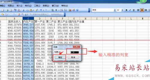 4、在彈出來的“列寬”對話框中,輸入精確的數值,點擊“確定”即可。