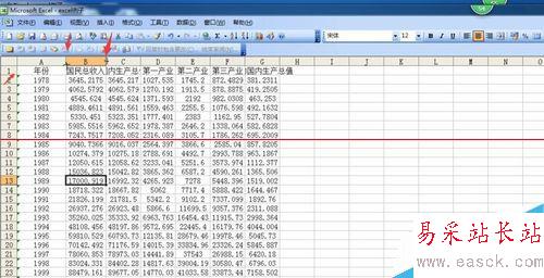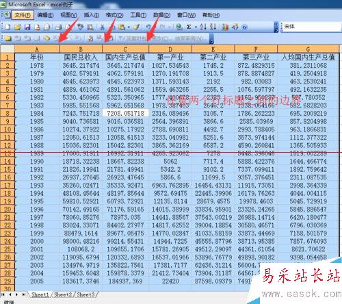 6、如果想要快速調節工作薄中所有列的列寬來適應其內容,則和上述步驟一樣,全選后雙擊任意兩列的列標題邊界即可。