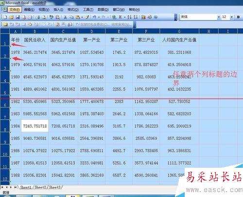1、手動調整行高和列寬。我們將鼠標光標移至需要調整的行邊界,當鼠標的光標變為十字形的時候,拖動邊界到想要調整的位置。