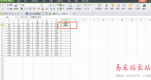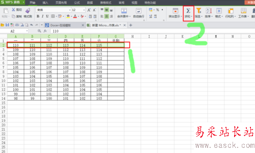 4、選中第一行,點擊求和就會自動顯示總和,如圖所示。