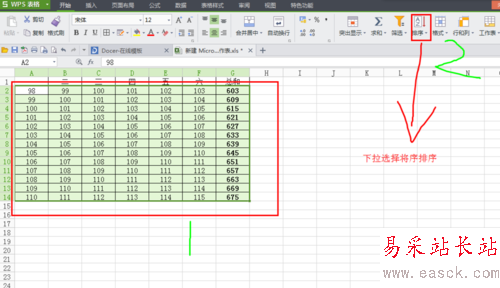 6、最后就是排序,選中所有數據,如圖所示,點擊排序→下拉選擇降序排列