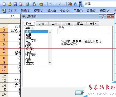 2、然后,按快捷鍵“ctrl+1”,就會(huì)彈出單元格格式,如圖所示: