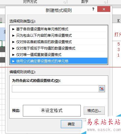 6、再點(diǎn)擊”使用公式確定要設(shè)置格式的單元格“項(xiàng):