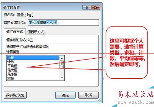 9、這里可根據個人需要,選擇計算類型,求和、計數、平均值等等。然后確定即可。