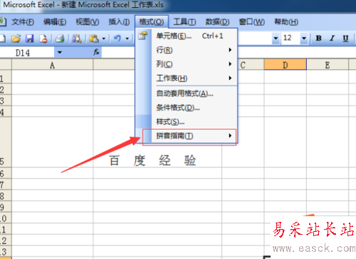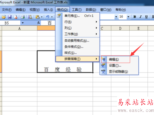 Excel 2003如何給漢字添加標(biāo)注拼音?