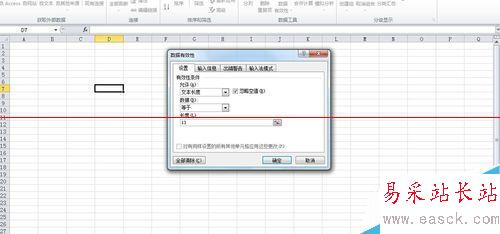 3、這里舉個(gè)例子。假如是輸入手機(jī)號(hào),那么要求輸入13位數(shù)。設(shè)置好這個(gè)選項(xiàng)后,不要急著點(diǎn)確定